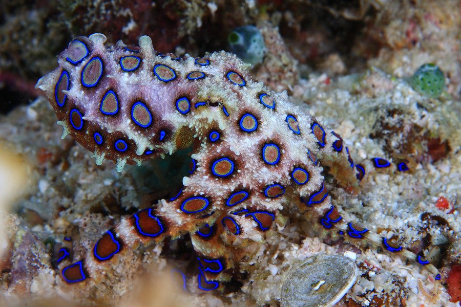 Soy un pulpo inofensivo que quiere hacer lo mío. Quiero usar mi cerebro para abrir botellas, quiero hacer el dulce amor y luego morir. Pero cuidado con el pulpo de anillos azules, porque puede matarte a ti y a los tuyos. 25 amigos más cercanos. Ni siquiera estoy exagerando. Aunque suele ser una criatura dócil, si te pilla comiendo su último trozo de pizza sin permiso o algo así, lleva suficiente veneno para matar a 26 personas, estás muerto hasta que mueras porque la mordida es indolora.