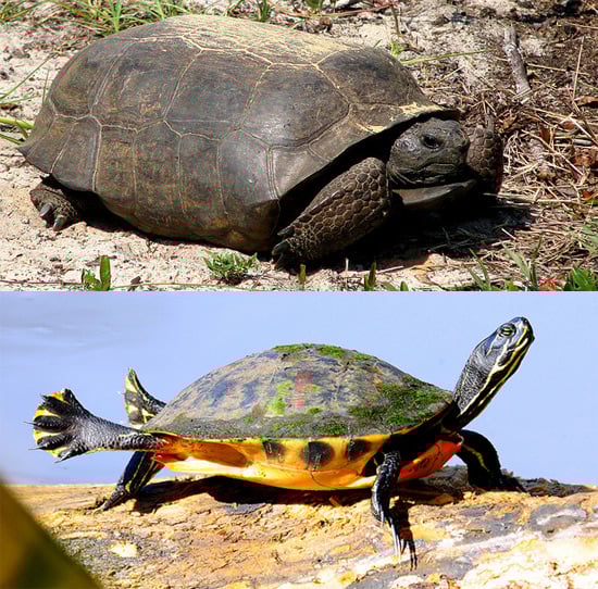 Incluso los niños saben que las tortugas viven principalmente en el agua y tienen patas palmeadas, mientras que las tortugas prefieren la tierra dura y pueden correr como si sus espaldas estuvieran en llamas.