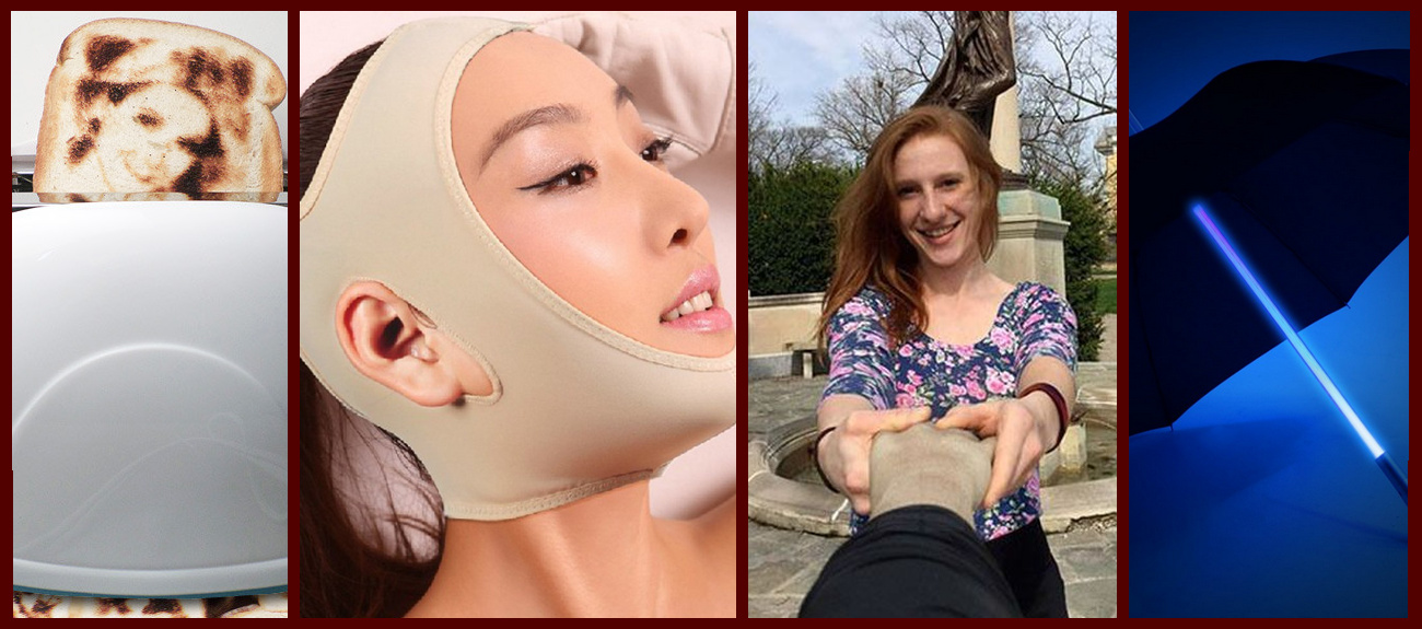 2) ¿Qué lista puede ser algunos accesorios de belleza de soplado mental de Japón? Comencemos con una máscara facial de germanio Kogao. Este contraste se envuelve en su rostro y literalmente aprieta la grasa gracias al efecto de sauna. Hay un dispositivo de tortura medieval.