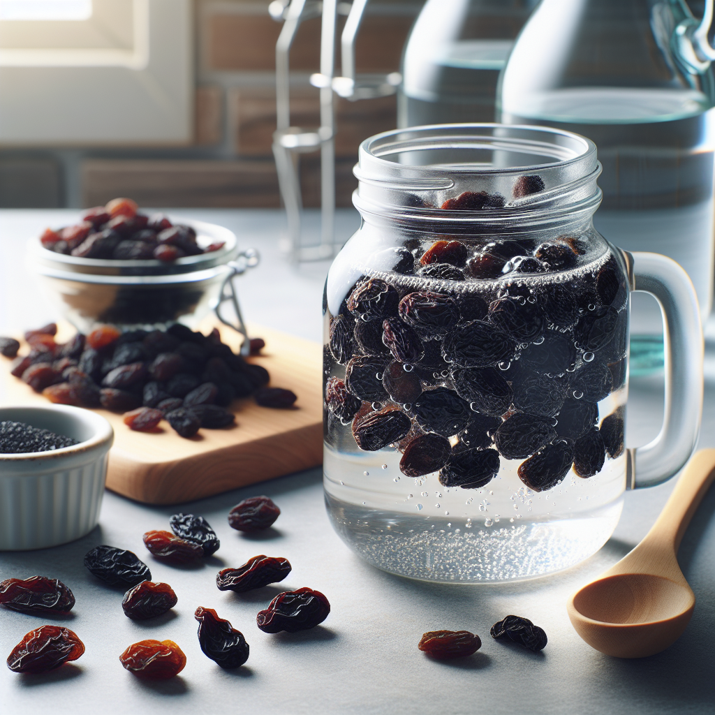 - Coloca las pasas en un recipiente con agua tibia y déjalas en remojo durante toda la noche. Esto ayuda a que las pasas absorban agua y suelten todos sus nutrientes beneficiosos en el agua.