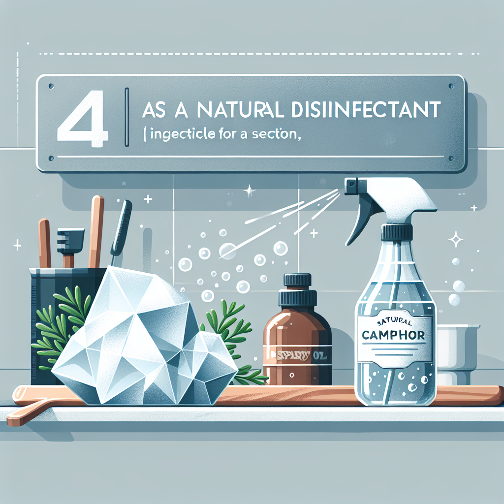 Otra utilidad del alcanfor es su potencial como desinfectante natural. Gracias a sus propiedades antimicrobianas, puede ayudar a limpiar y desinfectar superficies. Mezclado con otros ingredientes como el vinagre, se puede crear un limpiador eficaz que no solo desinfecte, sino que también deja un agradable aroma en el ambiente. Este uso es especialmente valorado en hogares que buscan alternativas más naturales a los productos de limpieza convencionales.