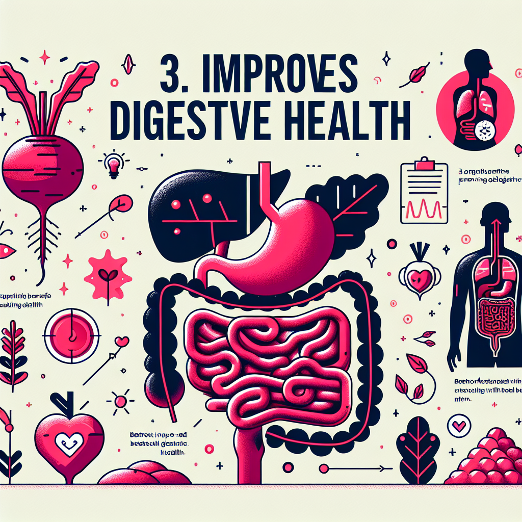 Debido a su alto contenido de fibra, el betabel es beneficioso para la salud digestiva. La fibra promueve la regularidad intestinal y ayuda a prevenir el estreñimiento. También contribuye a la salud del microbioma intestinal, lo que puede tener un impacto positivo en la digestión y en la absorción de nutrientes.