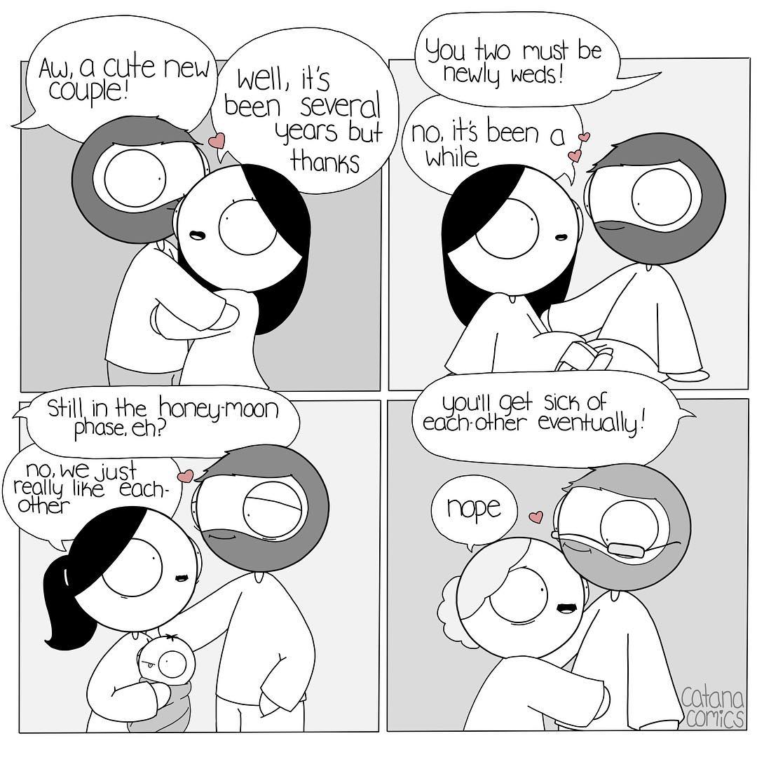 Los cómics de Chetwynd son increíblemente inteligentes, dulces y seguros de que todos se sienten cálidos por dentro. Él cree en una relación a largo plazo, y que el amor no arde, porque el tiempo pasa, sino solo el más fuerte y va a otro gusto. Sigue a Catana aquíUn número