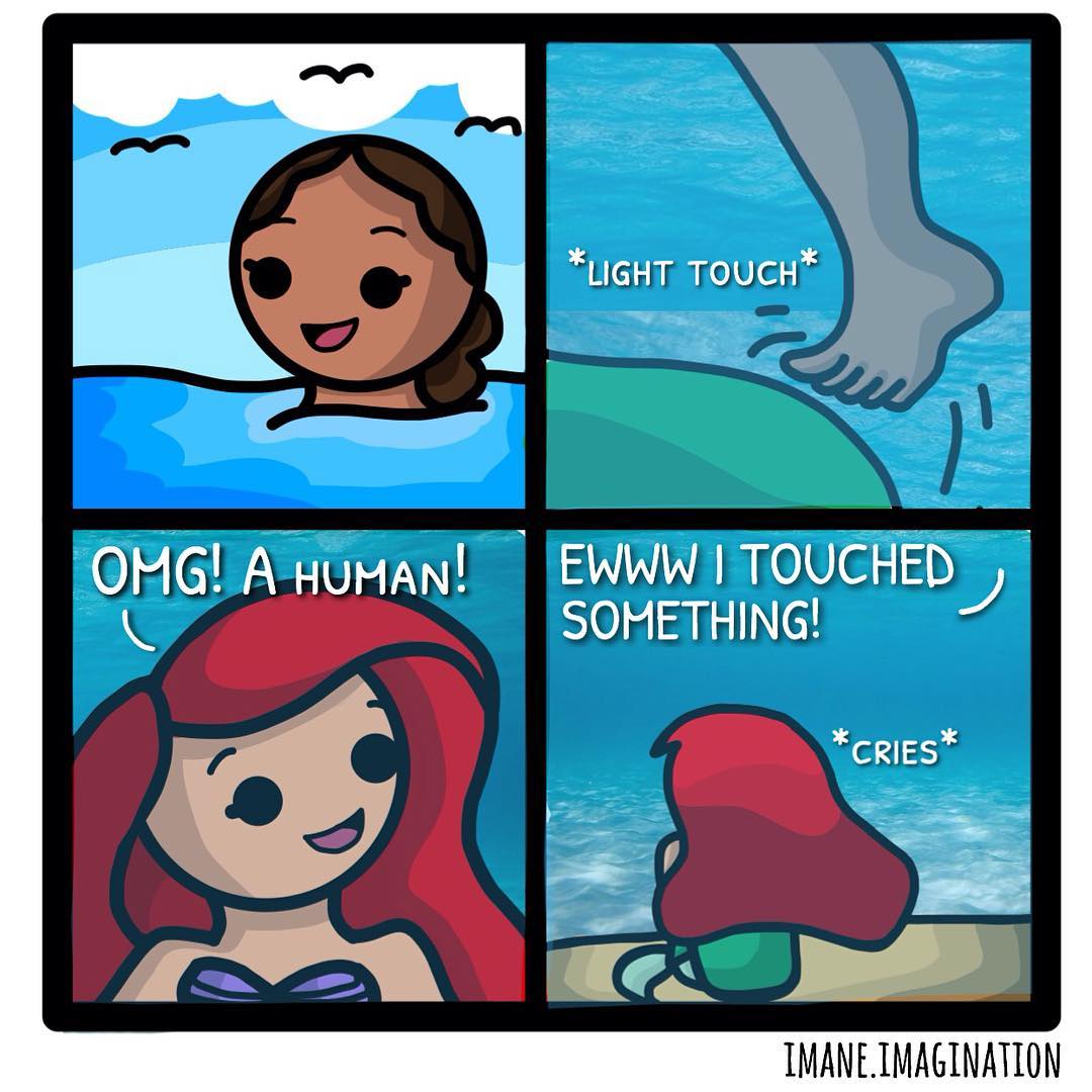 ¿Qué es lo más horrible bajo el agua? Según este inteligente Ariel, no es una medusa o bestias oceánicas extrañas. Es gente. Para una visita a la rareza más hermosa Autor InstagramUn número es divertido.