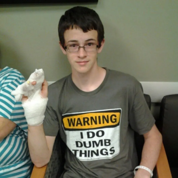 Como si no pudieras saberlo por la mano vendada, este tipo hace estupideces.