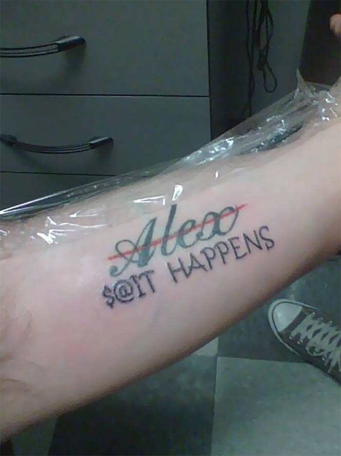 Hay ocasiones en las que tatuarse el nombre de alguien en la piel puede ser la idea más inteligente, pero claro, los tatuajes en general son bastante estúpidos. Sí, soy una de esas personas que amo el arte, en realidad, todo tipo de cosas. Hay una diferencia entre tener un cuadro elegante colgado en la pared y tatuarlo en tu brazo o pierna, especialmente cuando esa «obra maestra» dice Susie, o mejor dicho, «Gustavo Aramis Felipe Rojas». ¿Qué estaban pensando esas personas?