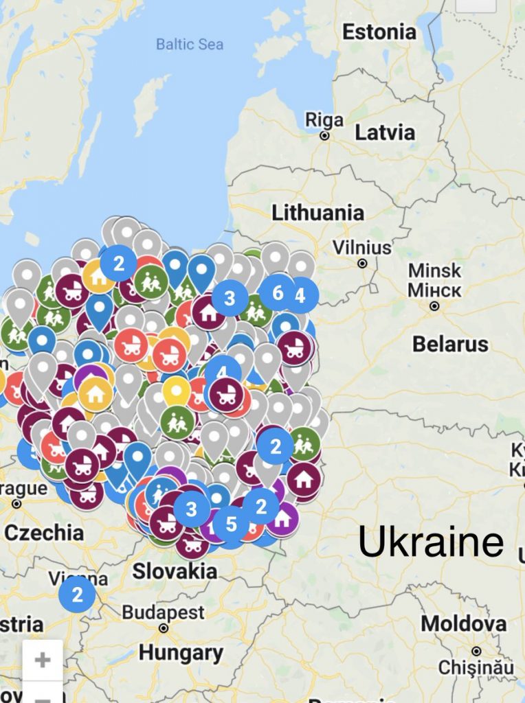 El bloque político y cultural de Europa Central, llamado Grupo de Visegrado, ha elaborado un mapa de casas seguras para quienes huyen de Ucrania. «La hospitalidad polaca no es un mito.»