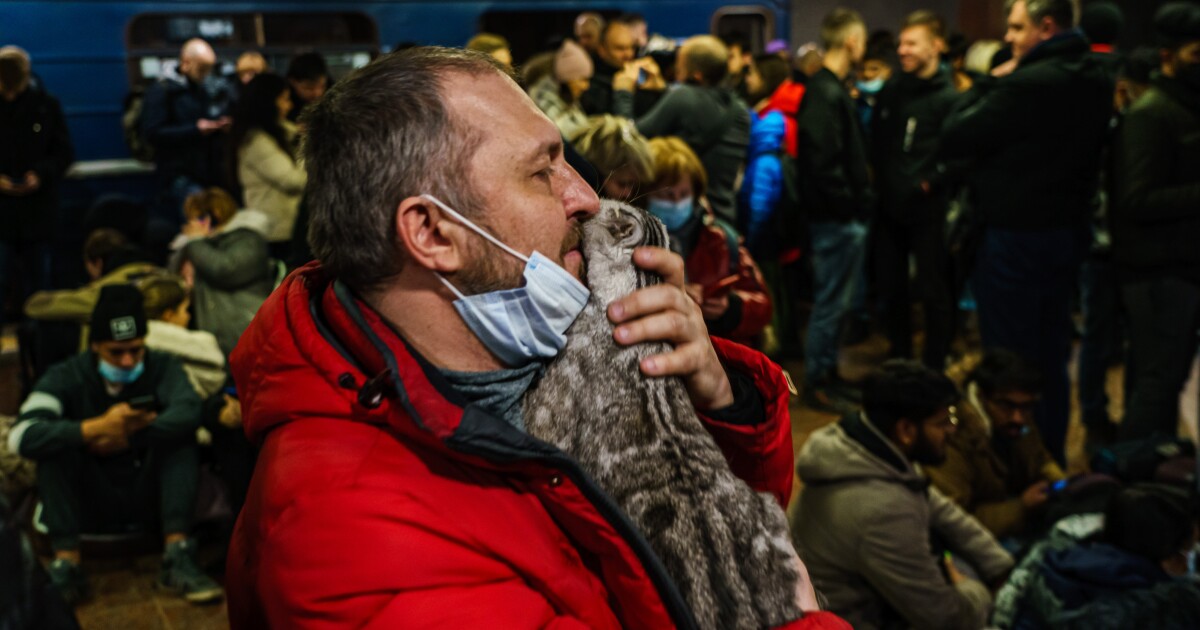 Como había devastación por todas partes, los ucranianos buscaron seguridad donde pudieron. Un hombre se refugió en una estación de metro con su gato.