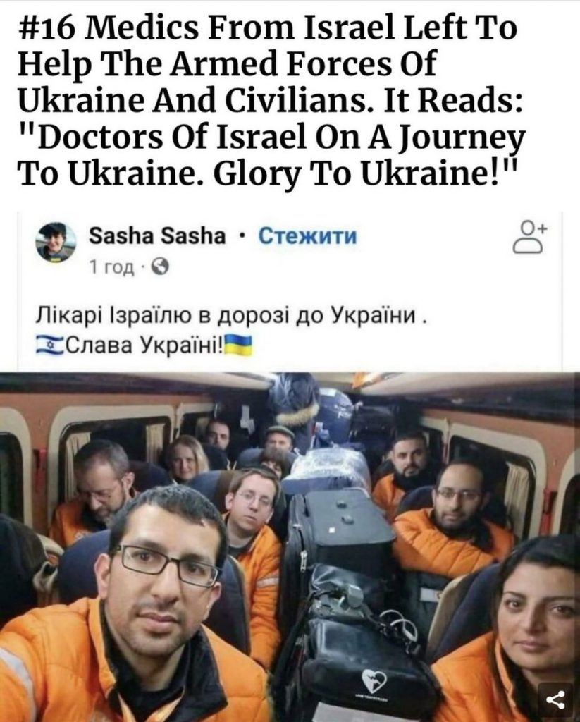 Los médicos publicaron sus viajes a Ucrania mientras viajaban para brindar atención médica de emergencia al personal civil y militar. «Médicos israelíes viajan a Ucrania. Felicitaciones a Ucrania».