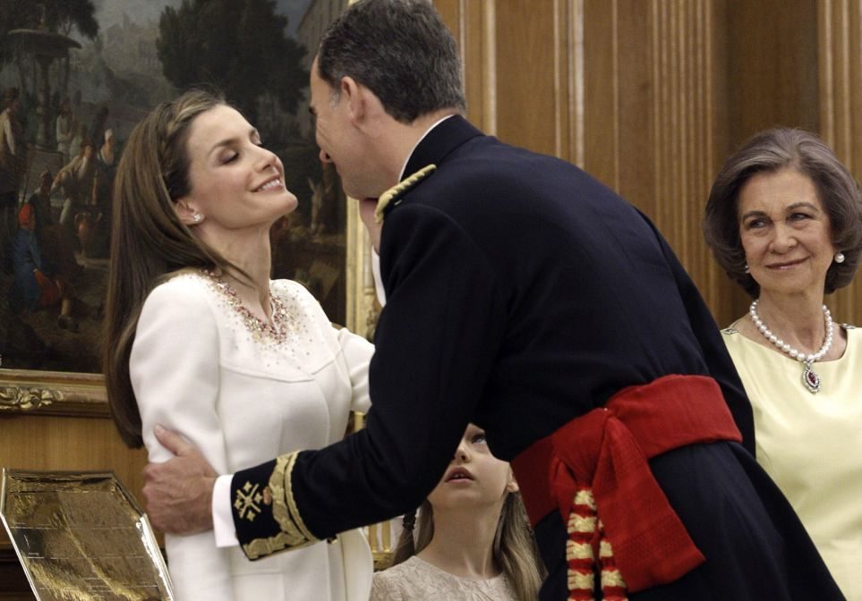 El Príncipe Felipe VI y Letizia Ortiz practican una nueva técnica del beso.