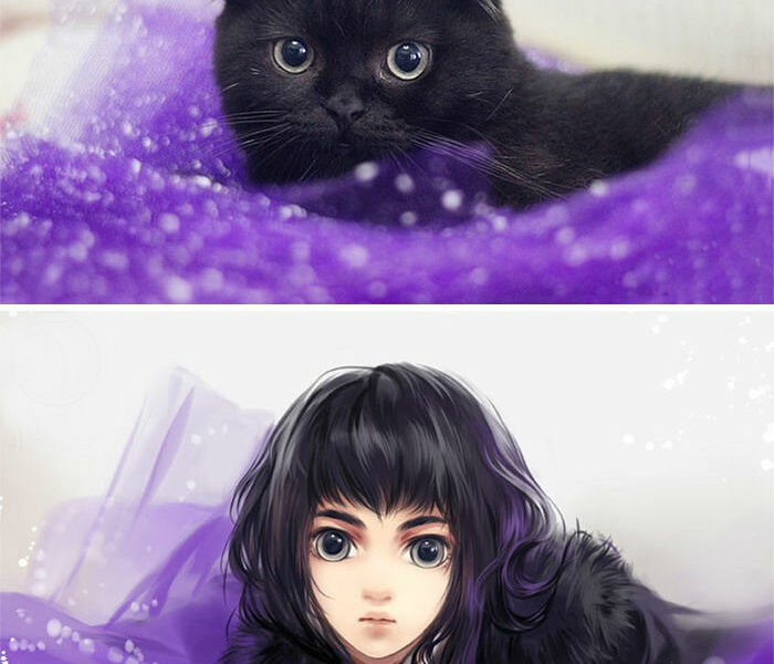 Bueno, eso es más o menos lo que esperarías del título. El artista chino Xuedaixun pasa su tiempo libre buscando lindas imágenes de perros y gatos...