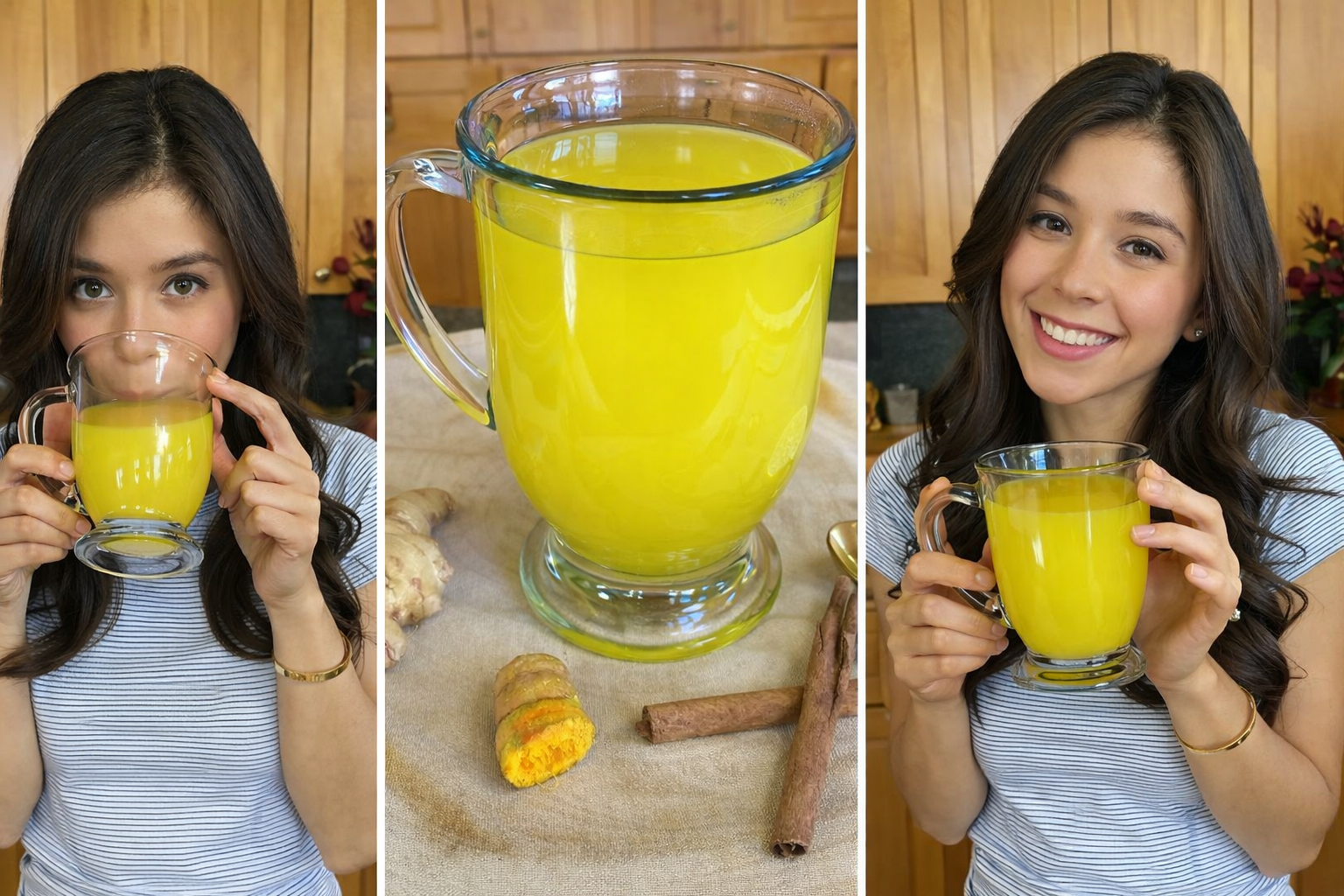 Mujer toma té de jengibre, comino y menta para eliminar gases y aplanar el estómago