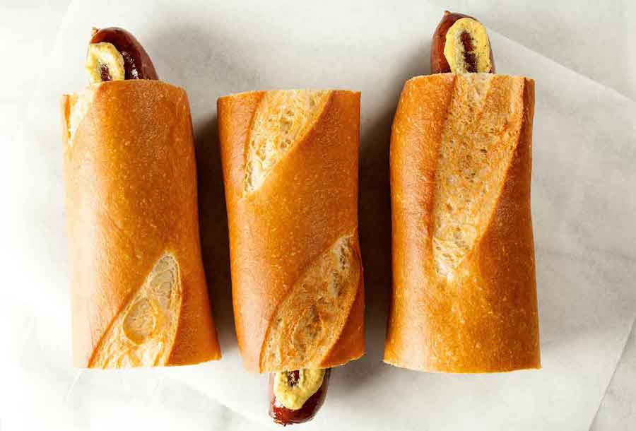 Un tipo de hot dog que se encuentra en todas las gasolineras del mundo, el hot dog francés es especial porque viene con una salchicha dentro de una baguette, ahuecada en una cavidad de pan y con una corteza crujiente. Para que su hot dog francés sea más francés, agregue un delicioso queso gruyere derretido (porque, al igual que el hot dog mexicano anterior, debe duplicar los estereotipos).