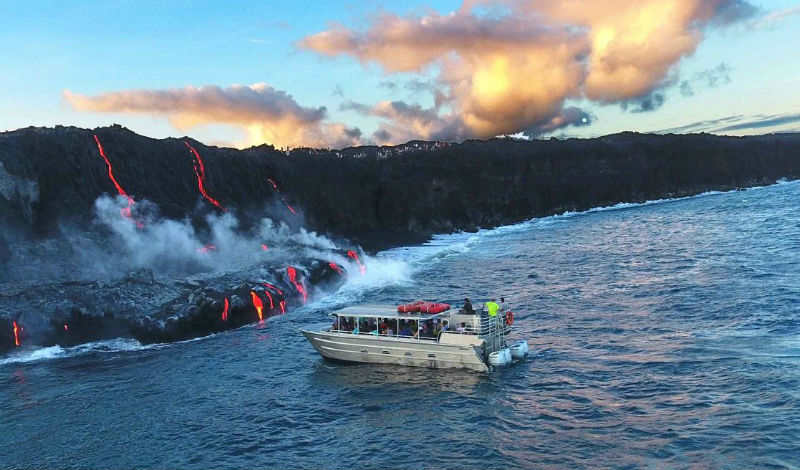 Sé que dicen que el sonido de las cataratas es bastante relajante, pero ¿y si es el sonido de la lava que cae? Si estás en Hawái, asegúrate de hacer un recorrido en barco hasta los ríos de lava que fluyen. Suena bastante seguro, pero. Estamos hablando de un volcán. Ya han ocurrido accidentes aquí antes. Un barco se acercó demasiado cuando una pequeña erupción literalmente arrojó una bola de fuego a 23 turistas, provocando que todos ardieran como el infierno.