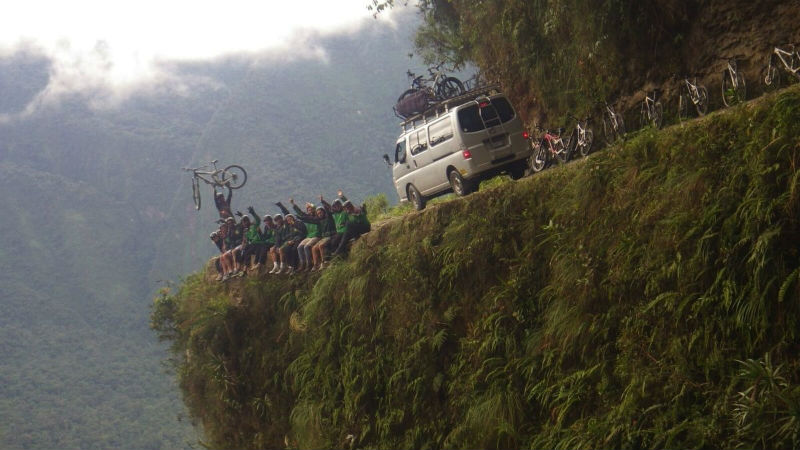 La carretera de los Yungas en Bolivia es tan peligrosa como parece. Te subes a una bicicleta y pedaleas por una carretera mayoritariamente estrecha, sin señales de barandillas, coches que vienen en sentido contrario y sin red de seguridad, lo que hace que esta carretera sea la más peligrosa del mundo. .