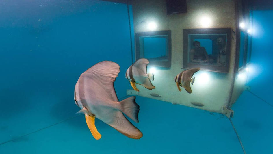 Aparentemente, los hoteles submarinos ahora son una cosa. No estaba al tanto, pero tampoco soy un gran fanático del agua. La gente cargada de dinero de alguna manera disfrutaba la noche unos metros por la noche. Lo vi sucediendo una vez en una película. Jaw, creo que se llamó.
